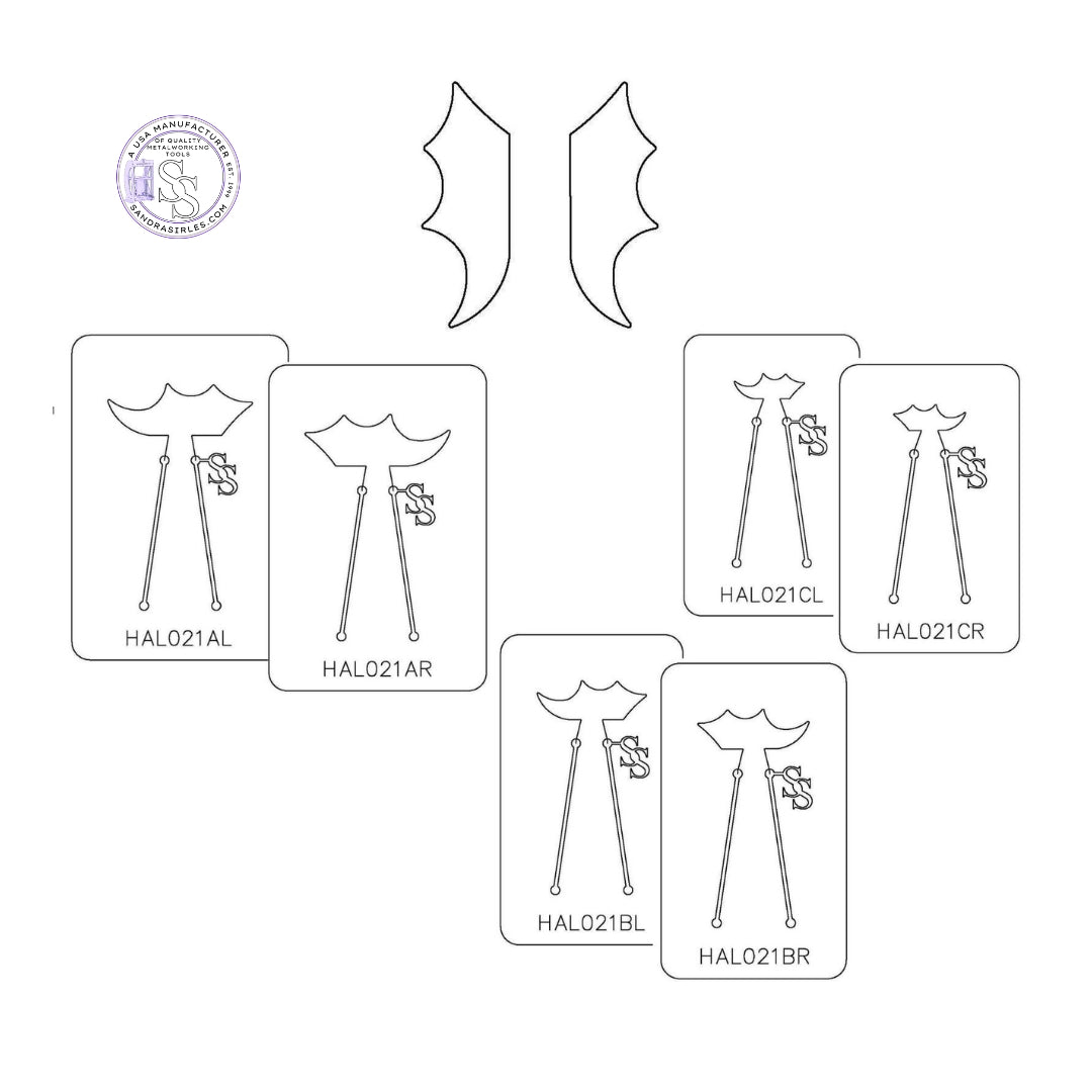 HAL021AR LG. BAT WING RIGHT- 2" H x 1-13/16" W Die 5-3/4" H x 3" W