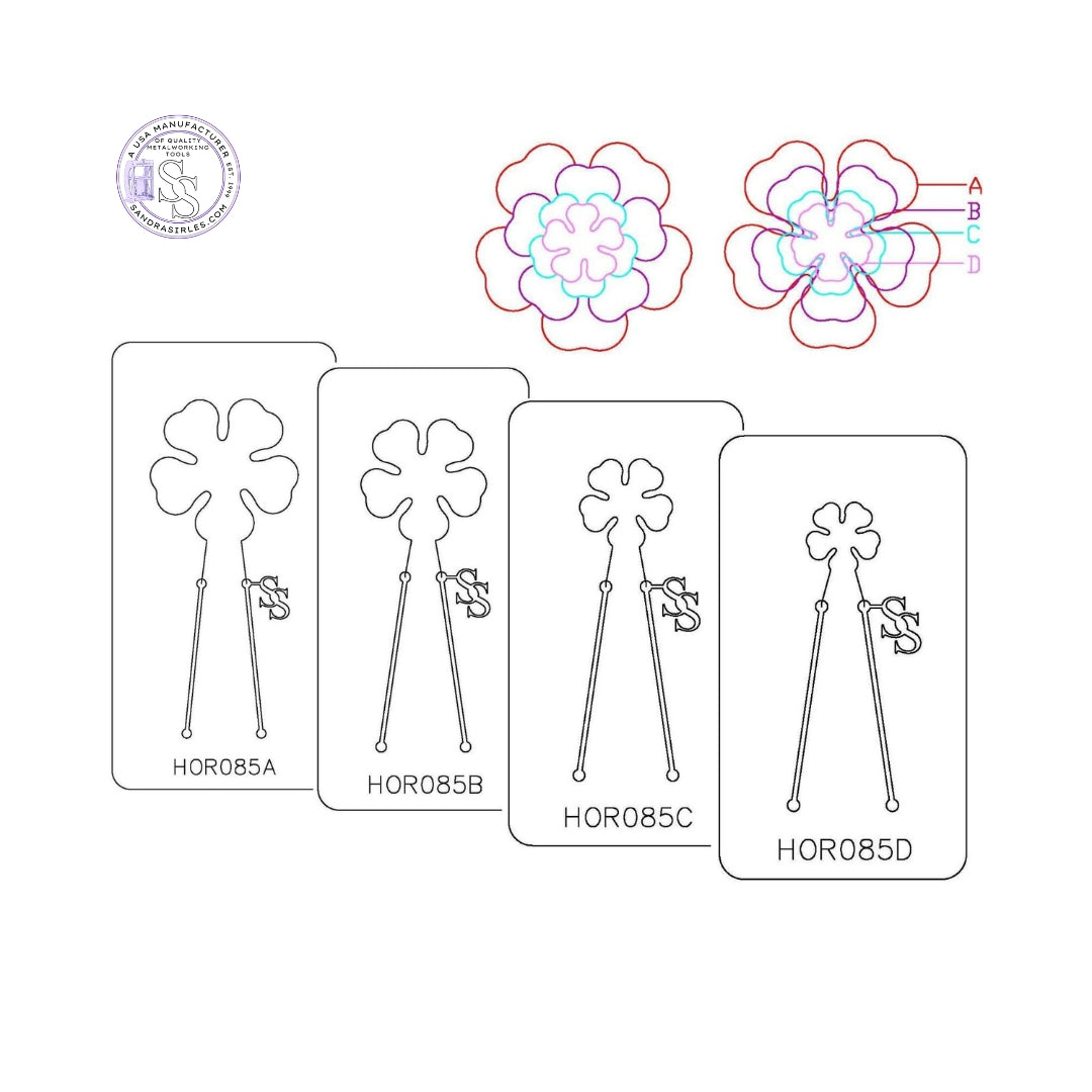 HOR085D XSM. FLOWER 5 PETAL- 3/4" H X 3/4” W Die 4-1/2" H X 2-1/2" W