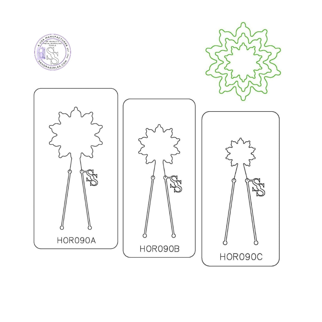 HOR090B MED. FLOWER- 1-1/2" H x 1-1/2” W Die 5-1/2" H x 2-1/2" W