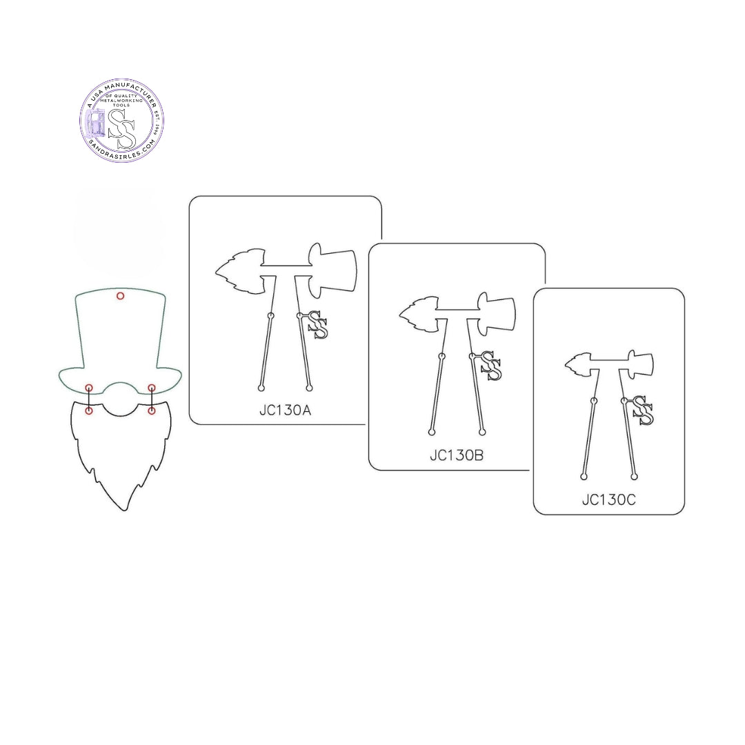 JC130C SM. LEPRECHAUN HAT/BEARD SET- 1" H x 9/16" W Die 4-1/2" H x 3" W