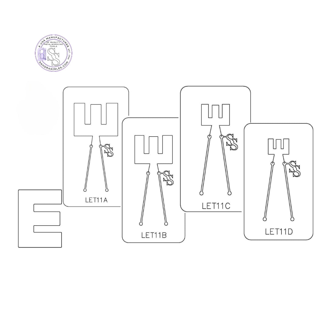 LET11D XSM. UPPER CASE LETTER E- 3/4" H x 5/8” W Die 4-1/4" H x 2-1/2" W