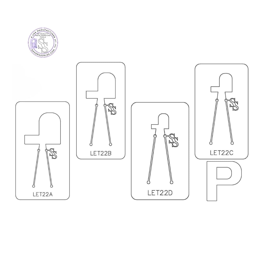 LET22C SM. UPPER CASE LETTER P- 1" H x 7/8” W Die 4-1/2" H x 2-1/2" W