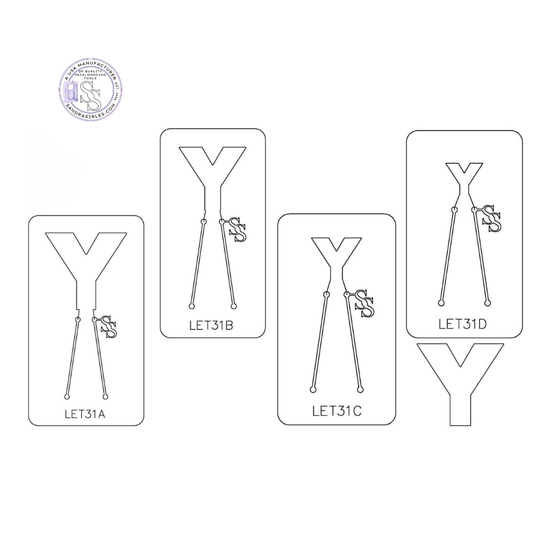 LET31D XSM. UPPER CASE LETTER Y- 3/4" H x 5/8” W Die 4-1/2" H x 2-1/2" W
