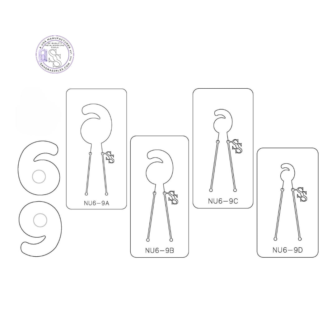 NU6--9C SM. NUMBER 6-9- 1" H X 3/4" W Die 5" H X 2-1/2" W