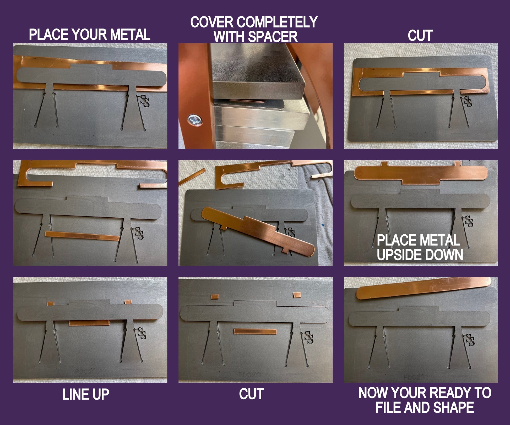 These are large cuff dies, please be aware and know how to use. Because these dies are long and thin, I placed a cutting tab on top to help cut the metal. Once cut, turn the cut metal upside down, place back into the die, line up evenly and cut. It’s that easy.