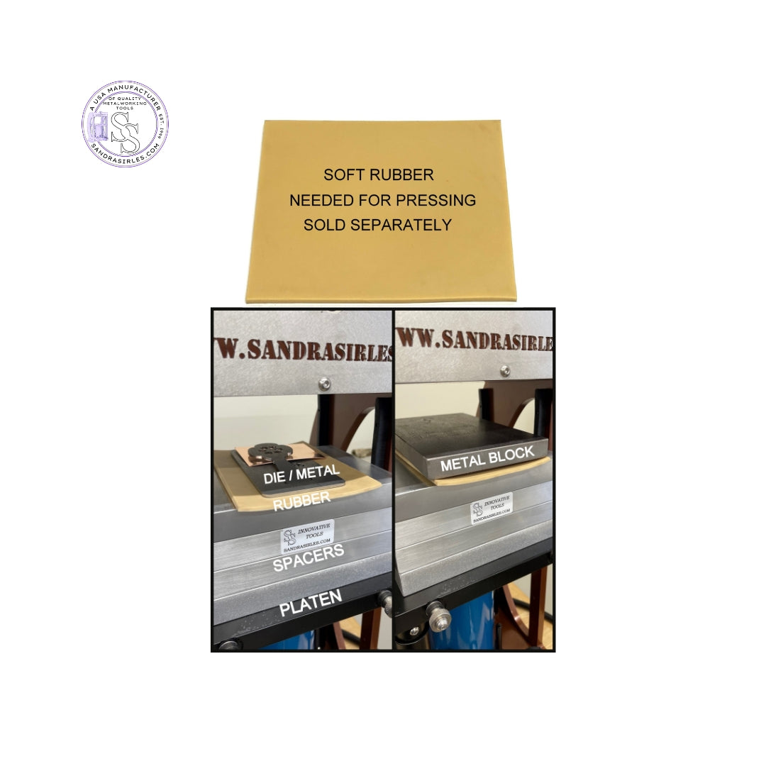 Pancake dies with a design cutout are used with a soft durometer RUBBER sheet also sold on the website.