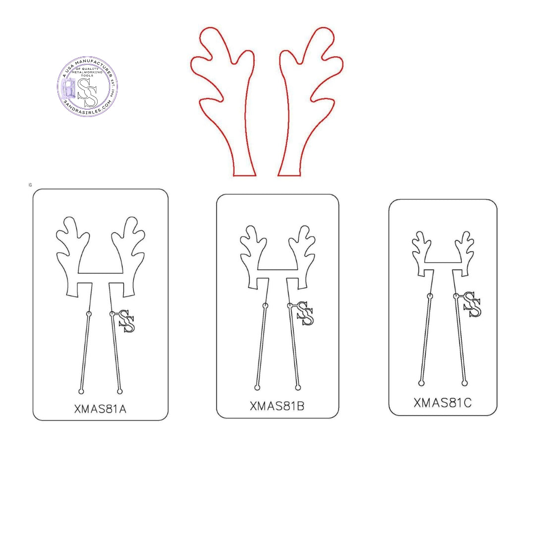 XMAS81B MED. ANTLER LEFT & RIGHT- 1-1/2" H X 5/8" W Die 5-1/2" H X 3" W