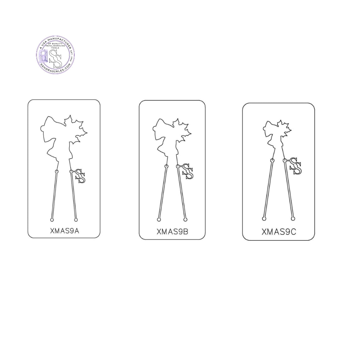 XMAS9C SM. BELLS/HOLLY- 1" H x 1" W Die 4-3/4" H x 2-1/2" W