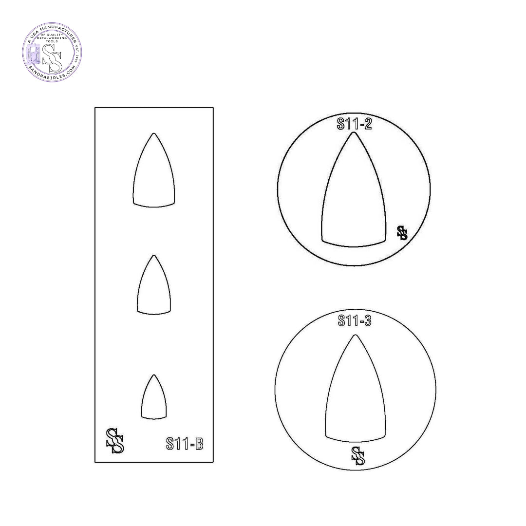 $24 for the 3" S11-3 SHAPE 16 ELONGATED TRIANGLE- 2" H x 1-1/8" W Die 3" Dia. x 1/4"