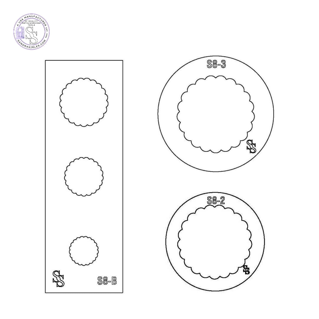 $24 for the 3" S8-3 SCALLOP ROUND- 2" H x 2” W Die 3" Dia. x 1/4"